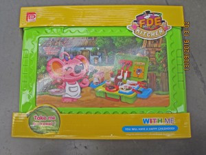 The batch was made up of 198 mini play kitchens, dressing tables and projector sets which came in their own travel cases. Individual items such as frying pans and hair dryers were wrapped in light plastic packaging.