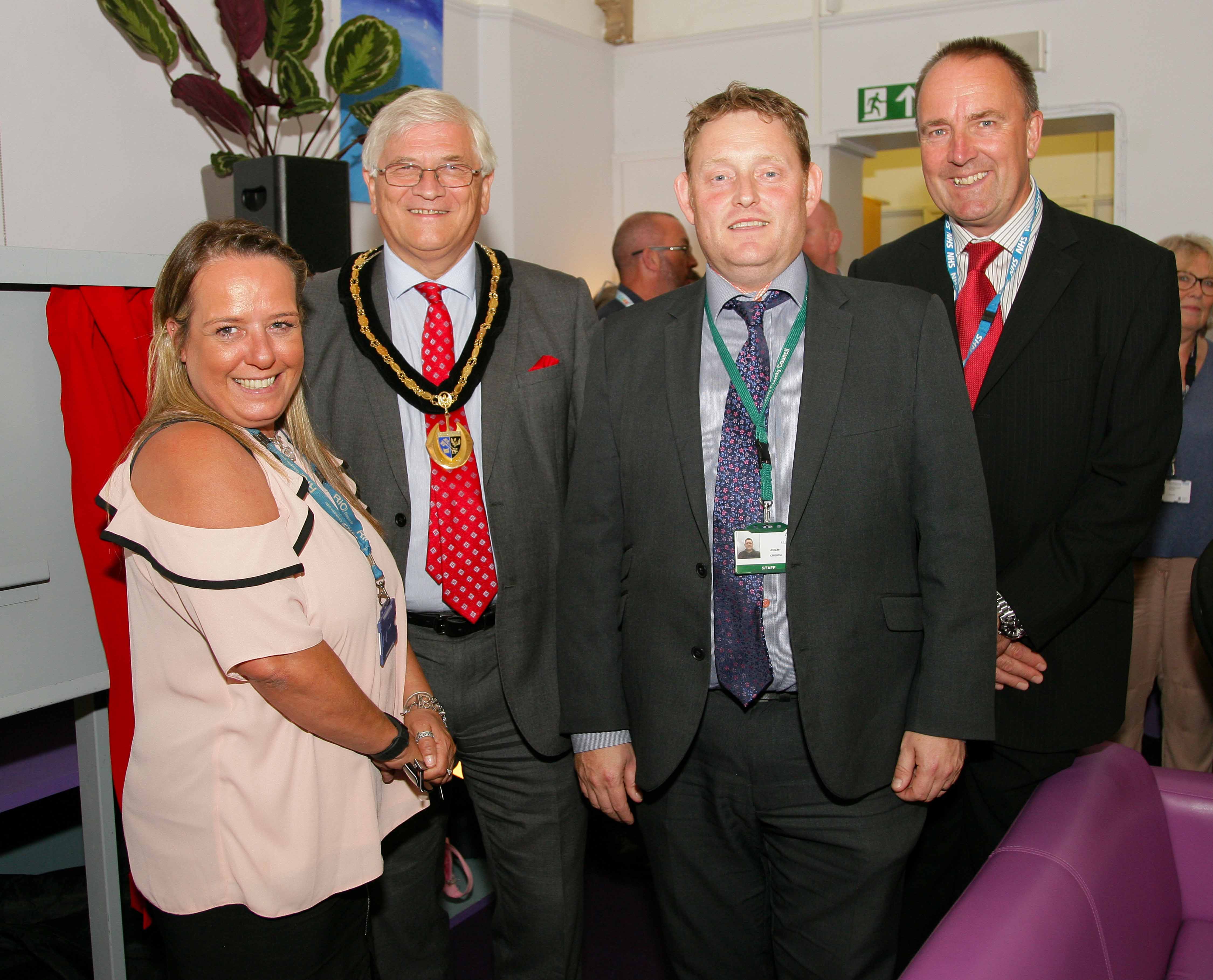 From l to r: Sharon Dean, Mindful Service Lead at Surrey and Borders Partnership; Surrey County Council Chairman Peter Martin; Jeremy Crouch, Surrey County Council’s Partnership and Community Lead for family services; Hugh Janes, of Guildford and Waverley Clinical Commissioning Group