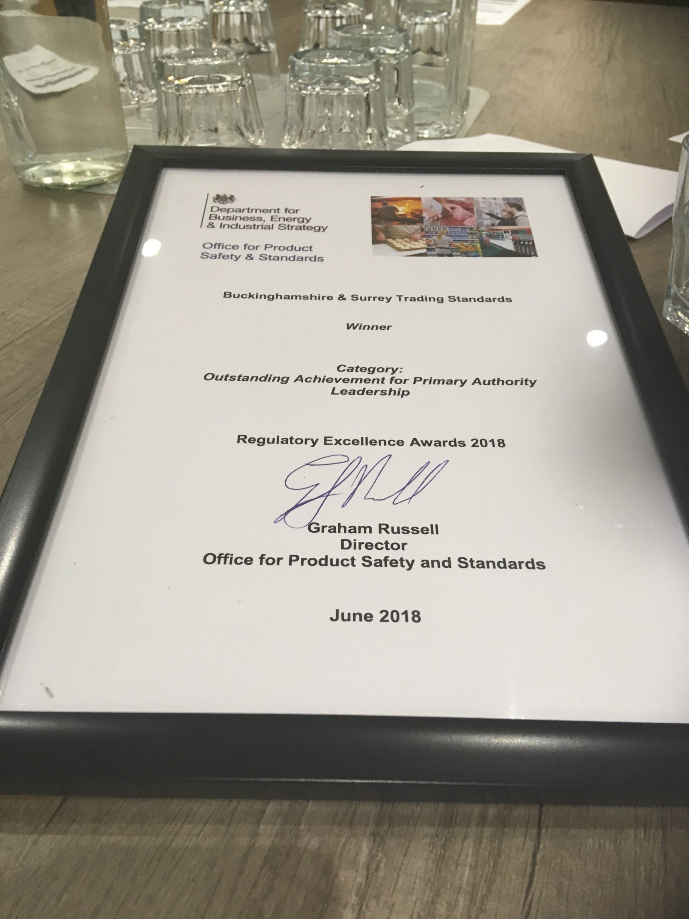Buckinghamshire and Surrey Trading Standards has won a national award for its work to cut red tape for businesses and boost the economy.