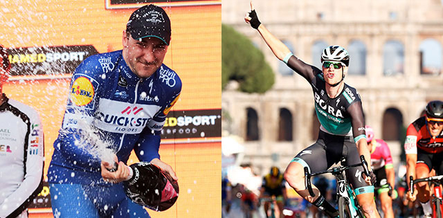 Elia Viviani (left) will go head-to-head with Sam Bennett (right) at the Prudential RideLondon-Surrey Classic on Sunday