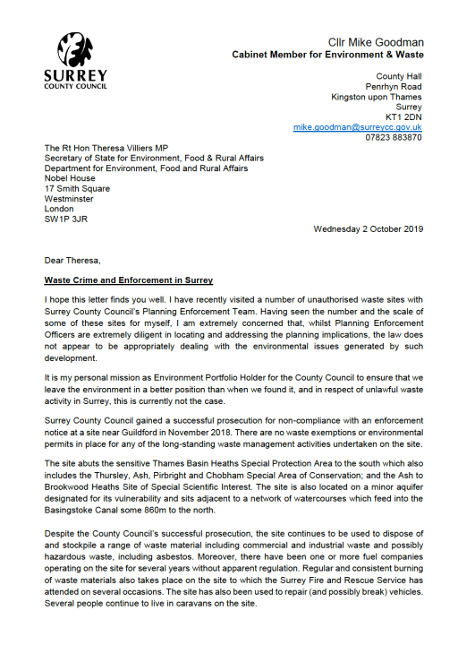 Cabinet Member calls for government support in tackling unauthorised waste sites