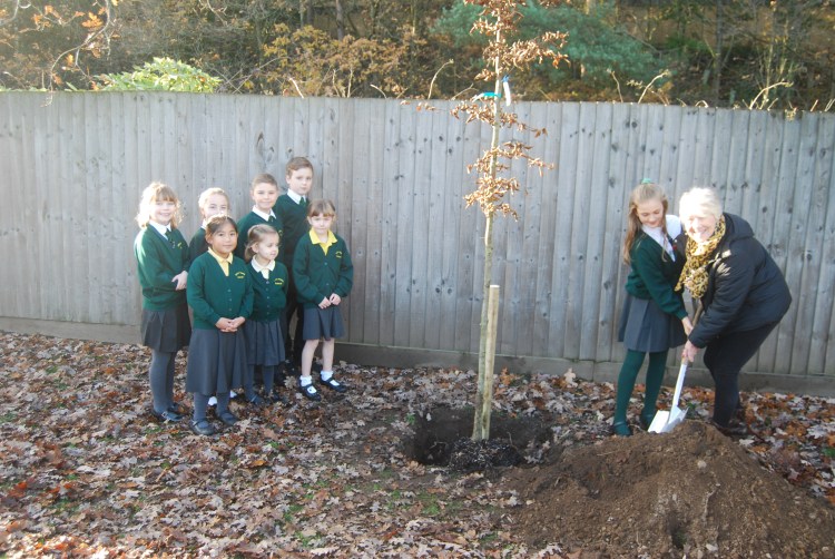 The trees were planted on Friday (29 November) to help mark National Tree Week. The pupils were helped by Mayor of Woking Beryl Hunwicks and headteacher Pauline Crowley. The planting was supported by Surrey County Council and Woking Borough Council.