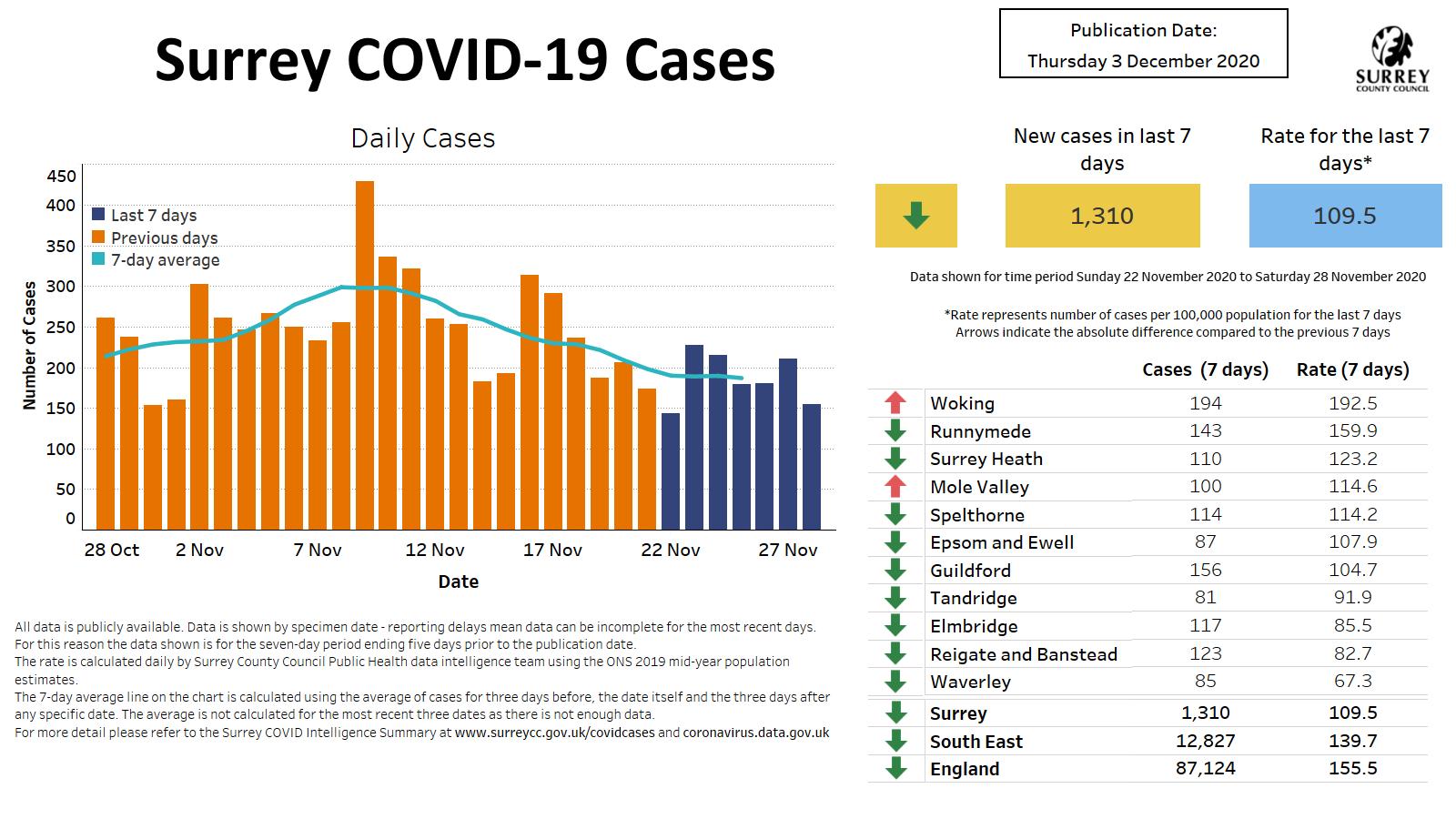 Surrey County Council has issued its latest data dashboard highlighting the latest figures for cases of COVID-19 in the county.