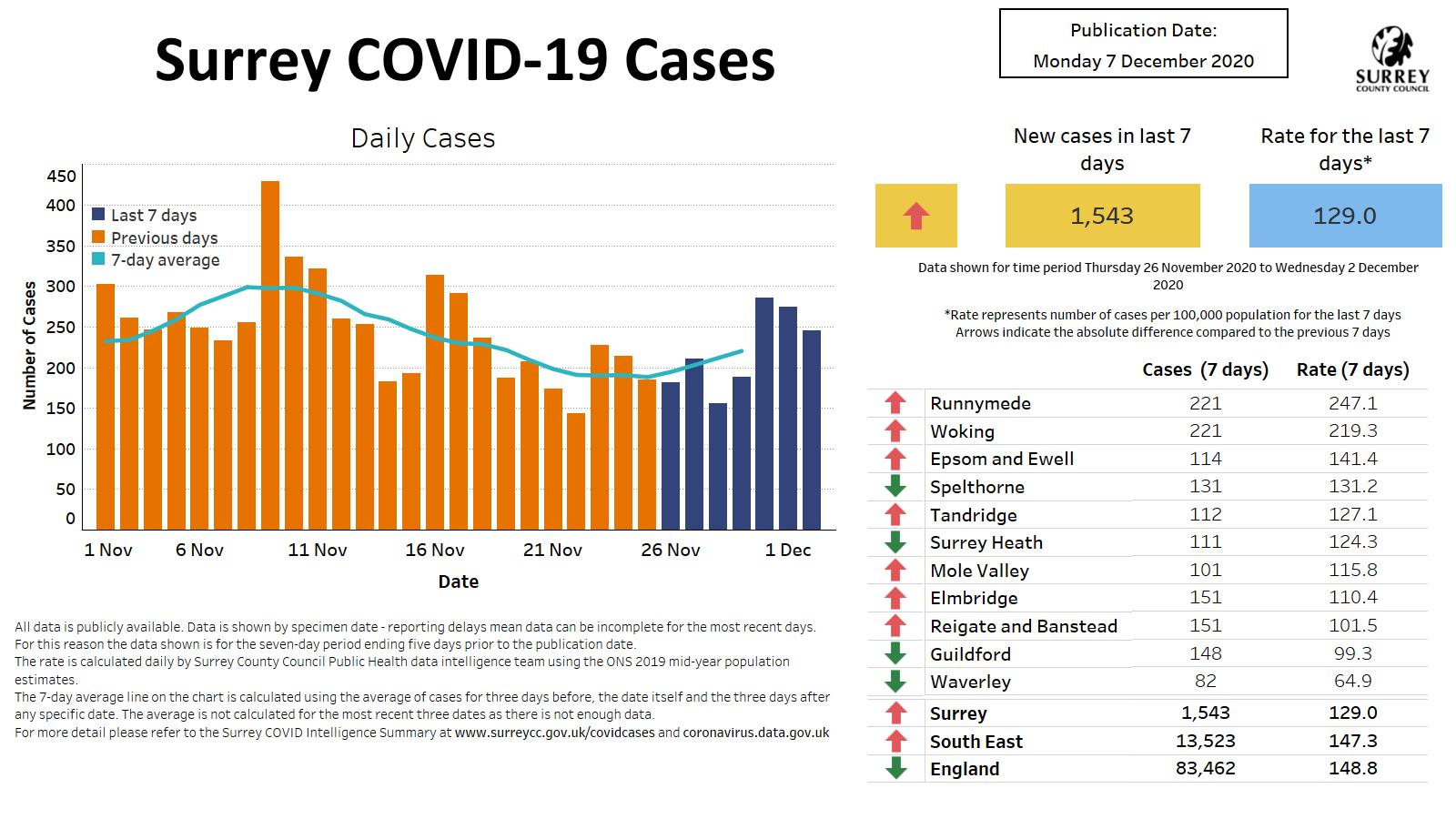 Surrey County Council has issued its latest data dashboard highlighting the latest figures for cases of COVID-19 in the county.