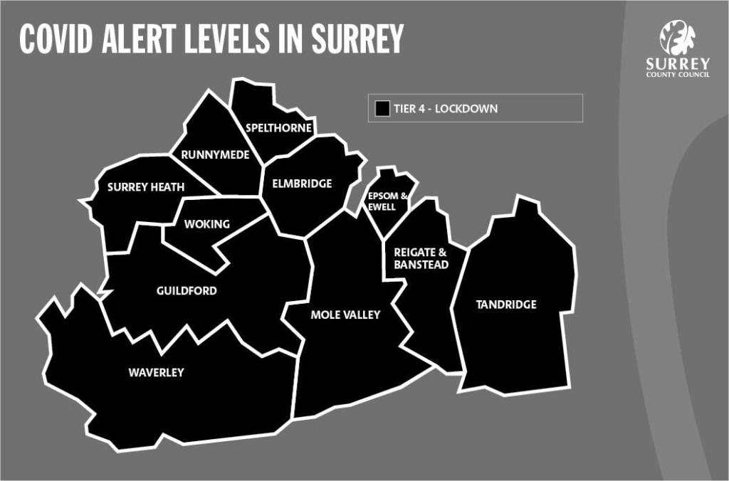 All of Surrey will become a Tier 4 COVID restriction following today’s announcement from the Secretary of State for Health.