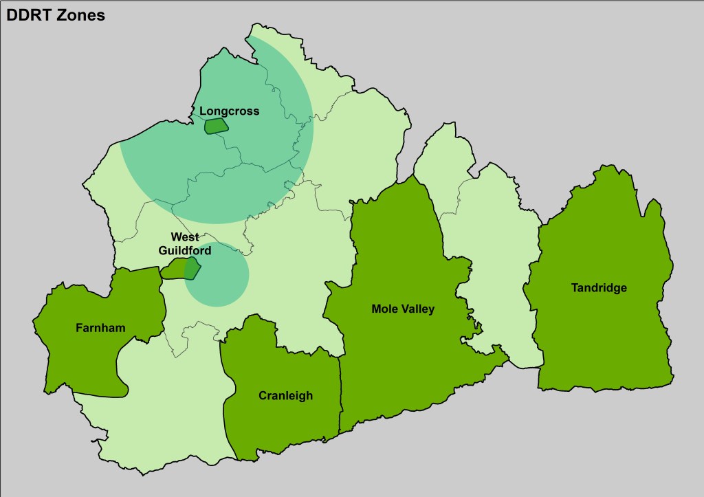 Rather than being restricted by traditional bus timetables, the accessible mini buses are available for travel for everyone, when they are needed. The services operating in West Guildford, Longcross and Tandridge also operate out of the area, to enable residents to get around more easily and access key areas including some local hospitals and train stations.