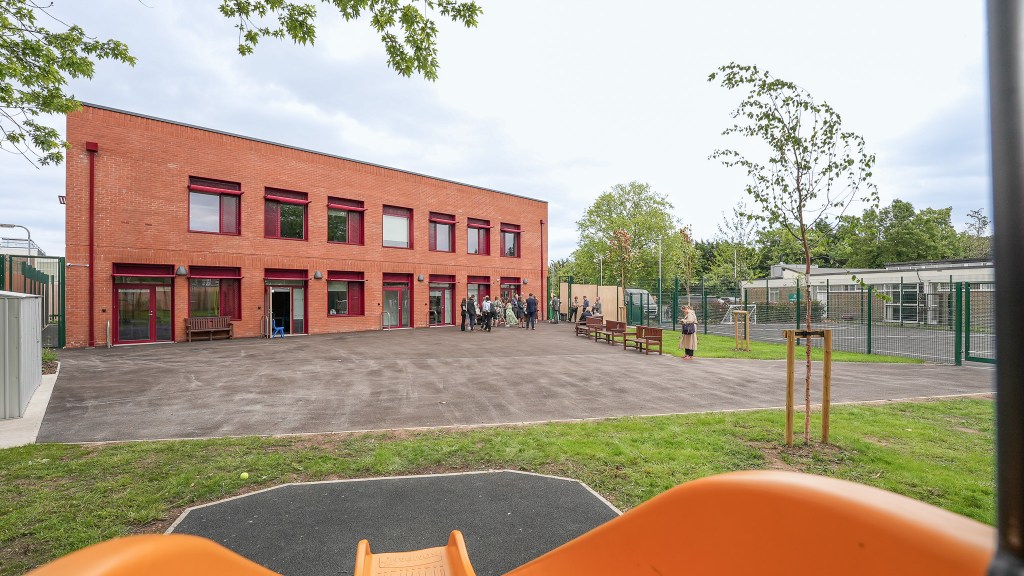 The new building includes group rooms and calm spaces, as well as a large community kitchen and dining area, an activity room and staff areas and a playground and multi-use games area.