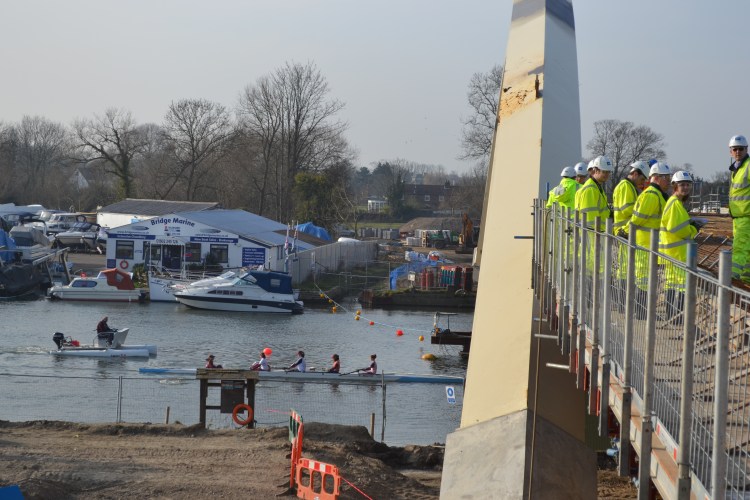 Rowers pass under Walton Bridge.