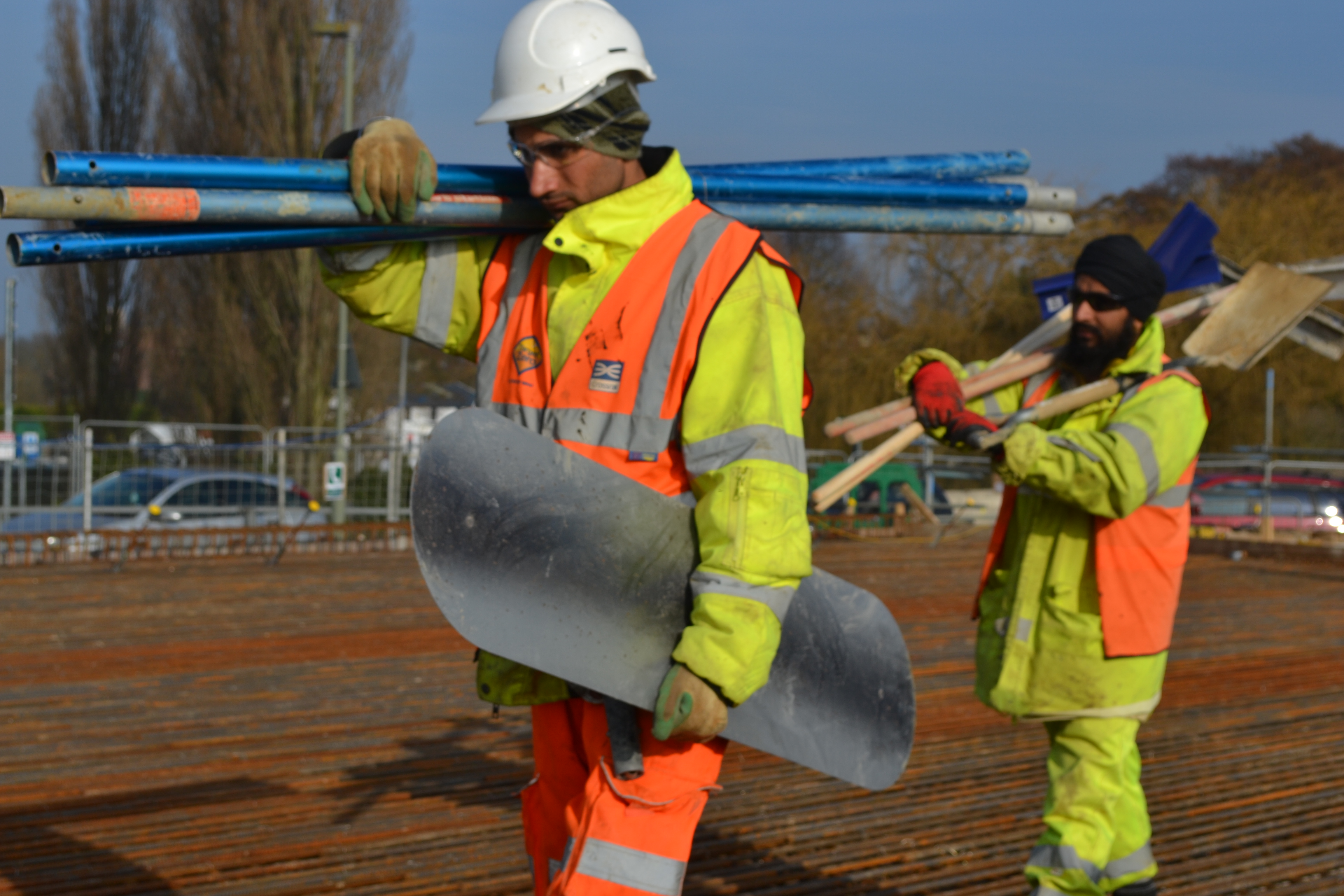 Workers on the new Walton Bridge.