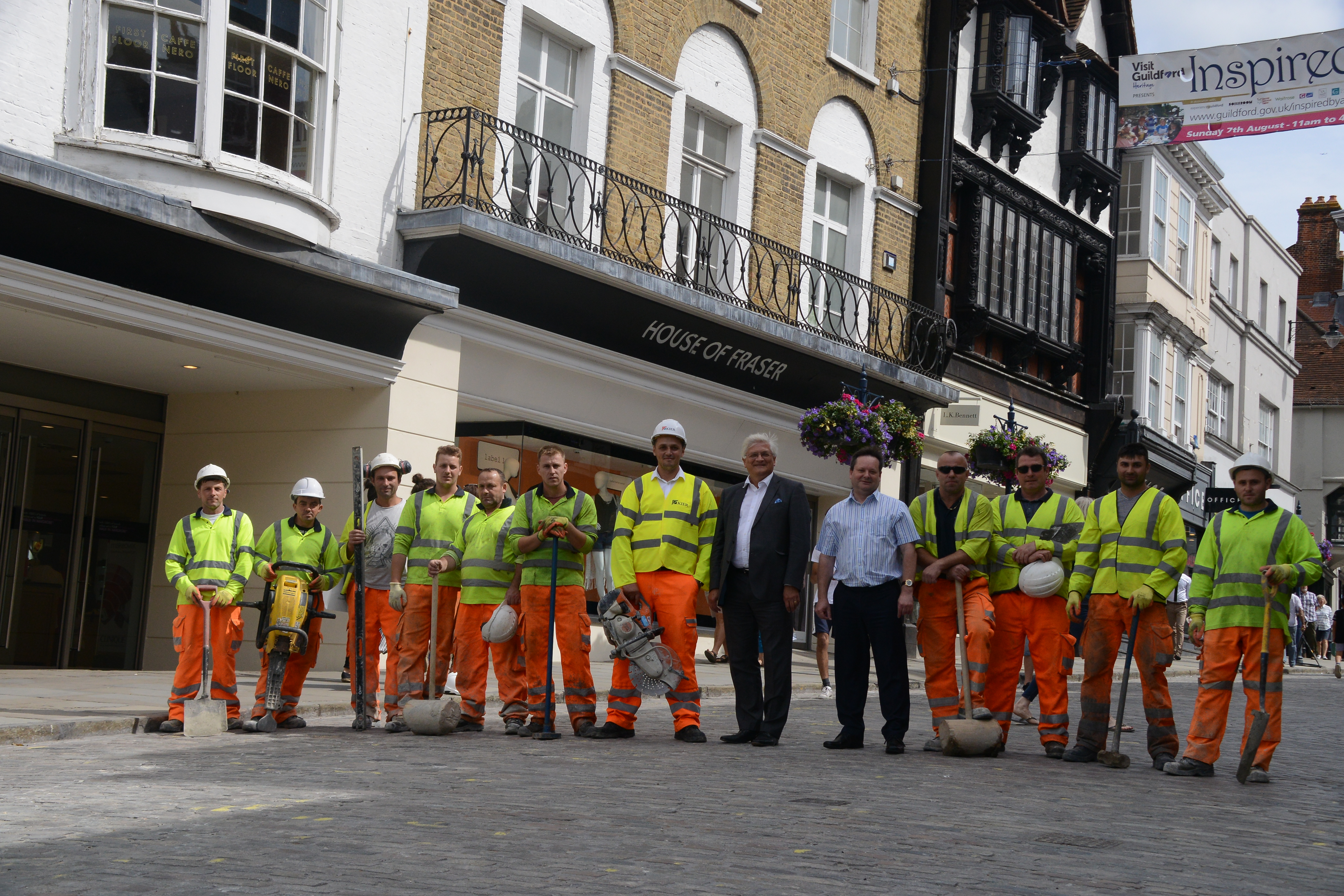 Peter Martin (centre left) and Paul Spooner with the setts workers